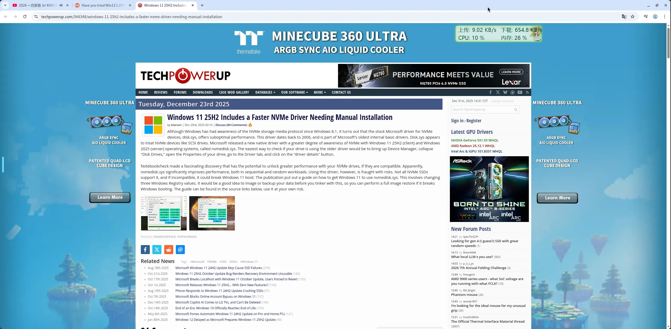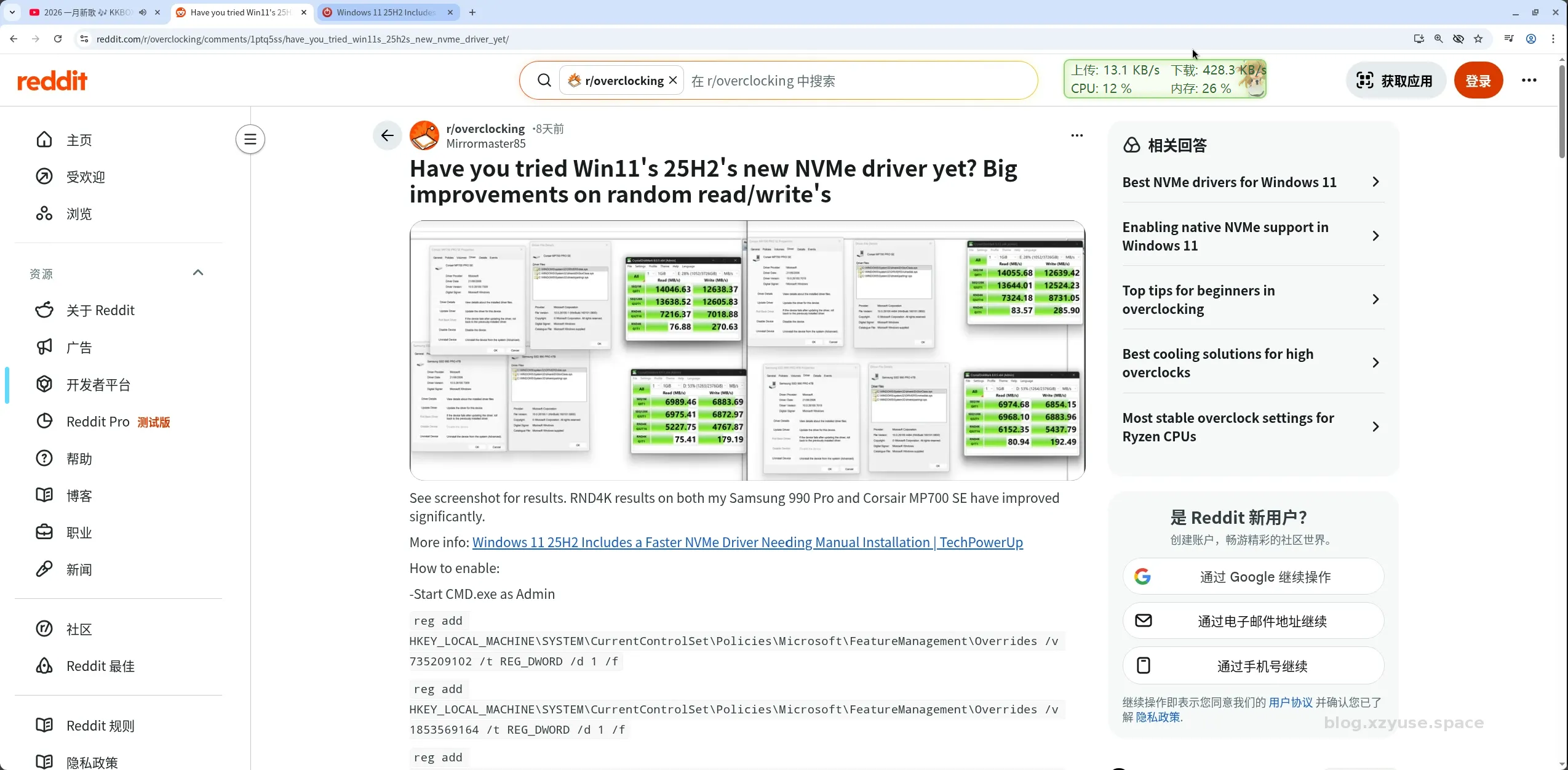 最近的Windows11 25H2 发布了新的NVME驱动,然后试了一下,确实硬盘性能有十分显著的提升。这里粘贴一下启动命令,依次在终端中执行下述三条命令,然后重启即可。